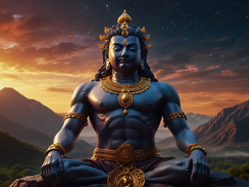 Coge sus manos con palmas juntas en los hombros de Shiva y mirada de encantamiento.